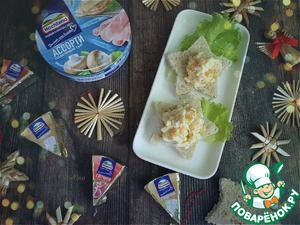 Можно подать как салат, а можно как закуску. Сделана закуска по старому еврейскому рецепту, где были взяты плавленный сырок, яйца и чеснок. Такая закуска присутствовала у всех советских граждан на любой праздник. Это было очень вкусно, её съедали всю! Я немного добавлю в салат-закуску своего. На новогоднем столе это блюдо будет востребовано. Подать можно по-разному. Я покажу 2 варианта.