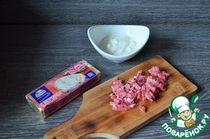 Смешать плавленый сыр, сметану, колбасу и зелень петрушки.