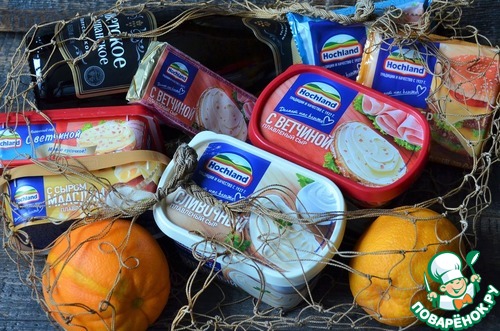 - Сыр плавленый (Hochland с ветчиной) — 50 г