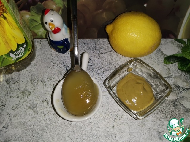 Мёд, горчицу, соль, перец чили, соль лимона и подсолнечное масло перемешать. Попробовать на вкус, возможно, потребуется коррекция.