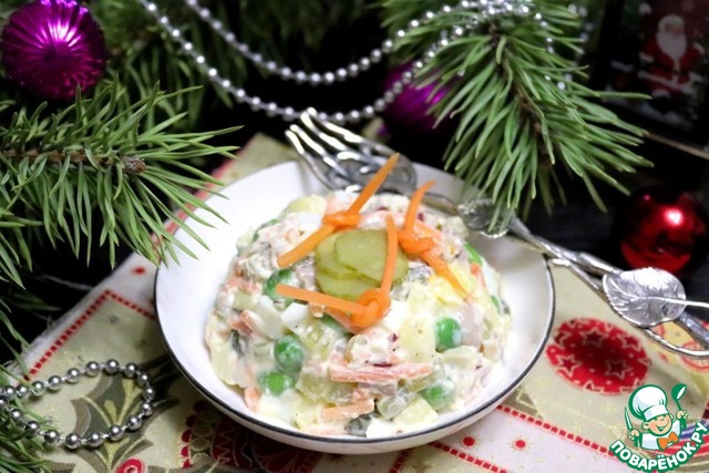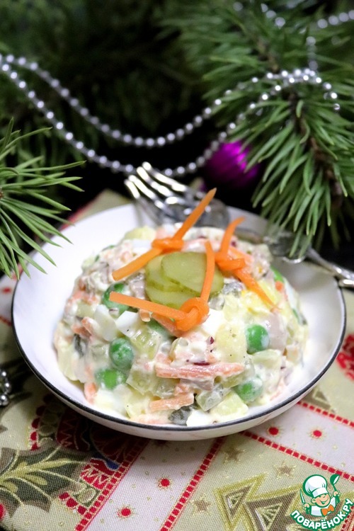 Попробуйте приготовить всем известный салат, добавив корейскую морковь вместо вареной. А заправить салат предлагаю сырным майонезом. Оливье приобретёт новый пикантный вкус.