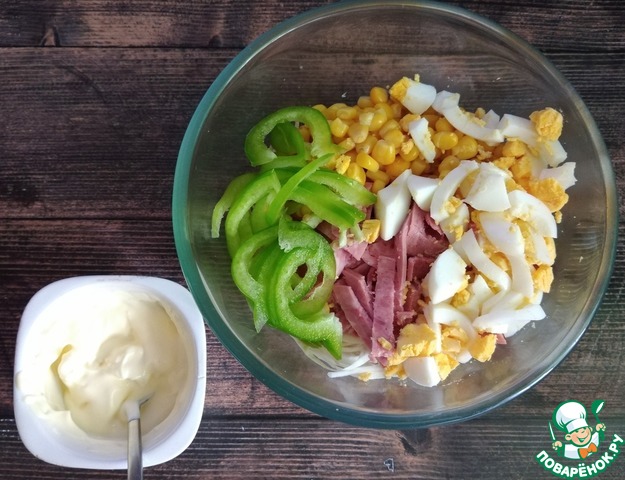 - Майонез (можно заменить сметаной или йогуртом, или взять половину-на-половину, вкусно со всем) — 3 ст. л.