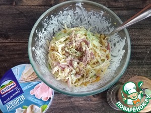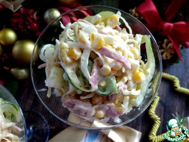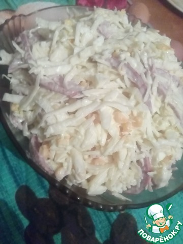 Колбасный салат с белокочанной капустой