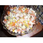 - Кукуруза (сладкая без жидкости) — 0.5 бан.
