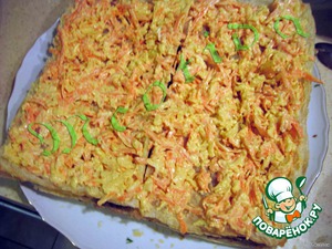 Рождество - праздник, когда вся семья вместе собирается за общим столом. Стол готовился обильный: блины, рыбные блюда, заливное, студень из свиных и говяжьих ножек, молочный поросенок с начинкой из каши, свиная голова с хреном, свиная колбаса домашняя, жаркое, медовые пряники, сбитень и, конечно, жареный гусь… но учитывая, что праздники длятся уже неделю и с каждым днем все сложнее заставить себя съесть хоть что-нибудь.. предлагаю отведать нежный.. легкий.. вкусный закусочный тортик, который осветит в Ваш дом светом звезд, сиявших на небе в час рождения Христа и впустит Ваши сердца СВЕТ РОЖДЕСТВА! легкое слоеное тесто.. нежнейшая начиночка из индюшачей печеночки, прослойка из сыра, морковочки и чесночка.. ну и кое-что еще :)