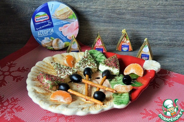 - Сыр плавленый (4 ломтика Hochland ассорти) — 70 г