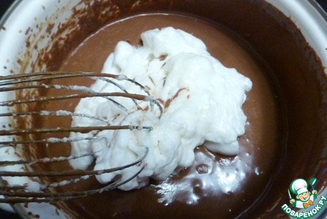 И в заключении в 2-3 захода аккуратно и нежно вмешать взбитые белки. Работать движениями снизу вверх.