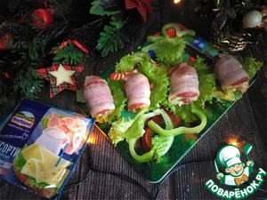 Такую закуску люблю тёплую. Делается она быстро и подойдёт на стол неожиданно пришедшим гостям. Через 15 минут при помощи СВЧ у вас получится замечательная и очень вкусная закуска - рулетики из сырокопчёного бекона с бутербродным сыром и салями. Можно использовать как горячее, если побольше сделать, и подать с каким-то гарниром.