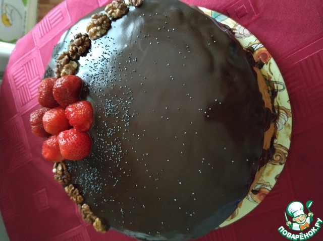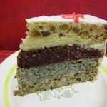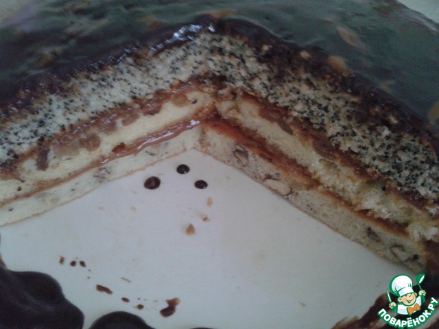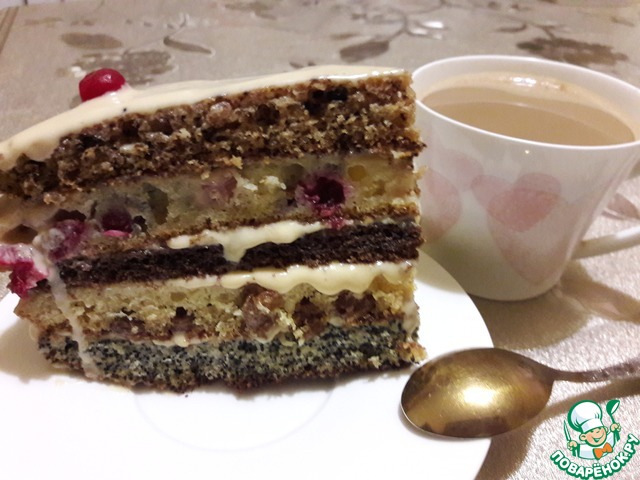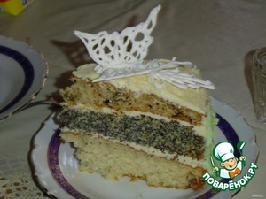 Таким же образом замешиваем тесто и на второй корж, только мак заменяем на орехи. А в третьем корже - орехи заменяем на изюм.