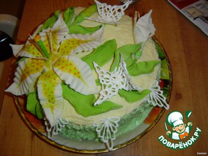 Такой торт я пеку уже более 20 лет, и до сих пор моя семья ждет, когда наступит праздник и на праздничном столе вновь появится "Дамский каприз". Только украсила я его по-новому. Прошу не судить меня строго, так как я только пытаюсь делать украшения из мастики и айсинга.
