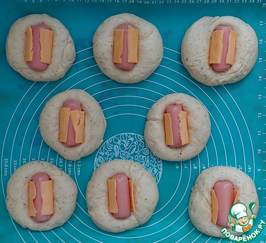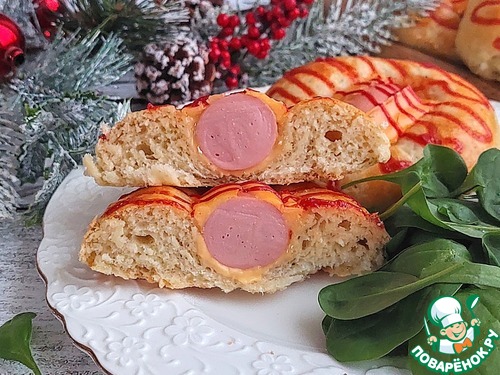 Рецепт «Булочки с сосисками и плавленым сыром»: