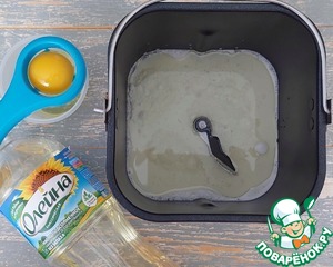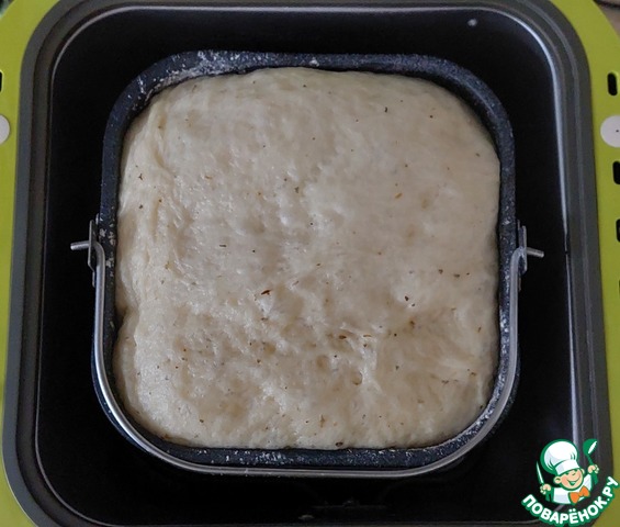 Оставить в теплом месте на 40 мин. для увеличения в объёме. Я оставляю в хлебопечке.