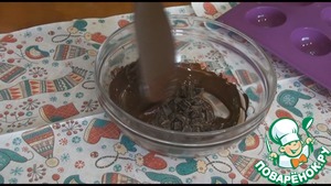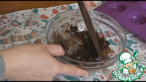 Топим шоколад в микроволновой печи короткими импульсами, нагрел, перемешал, нагрел, перемешал. Важно не перегреть, импульсы делаем по 10-20 секунд в зависимости от мощности микроволновки. Можно растопить и на водяной бане.