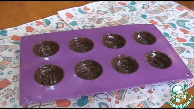 Теперь приступим к изготовлению шаров. Распределяем шоколад по форме, мне удобнее это делать с помощью синтетичной кисти, можно ложкой. Покрываем первый слой шоколада, оставим на 5 минут.