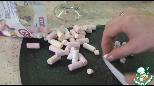 Подготовим маршмэллоу, если вы купили крупный, можно его нарезать помельче.
