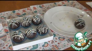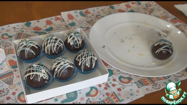 Украшаем шары по своему вкусу, можно полить растопленным белым шоколадом, посыпать сахарной посыпкой. Упаковываем в бумажные подставочки и выкладываем в коробку. Замечательный подарок готов!