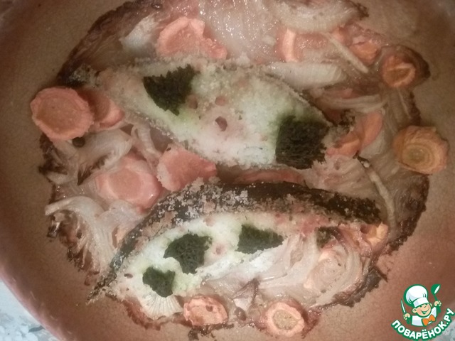 Овощная подушка не даст рыбе окончательно утонуть в собственном соке и обогатит вкусом. -