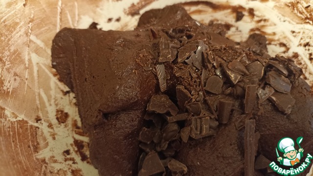 В конце добавляем 15 г шоколада предварительно раздробив его на мелкие кусочки и немного перемешаем.