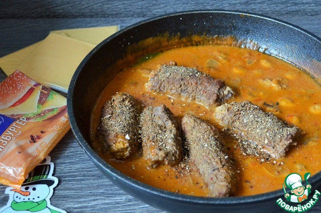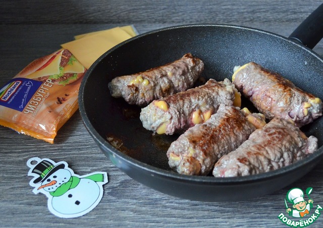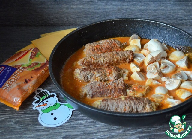 Рецепт «Рулетики с сыром в томатно-пивном соусе»: