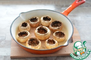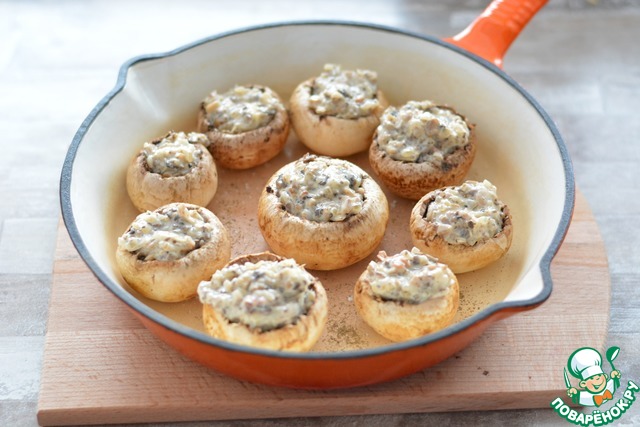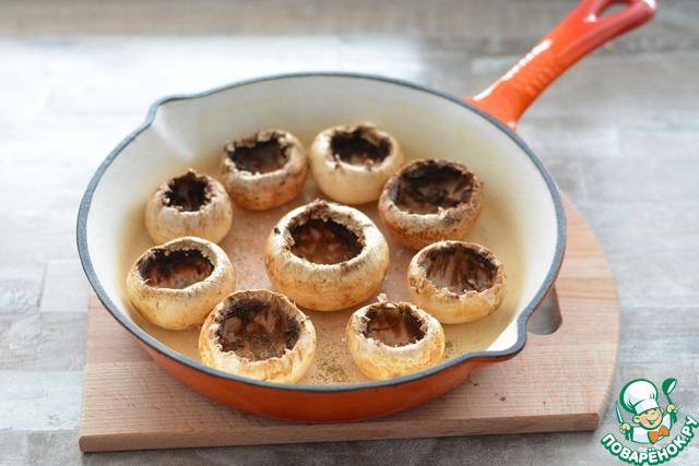 Подготовленные шляпки шапиньонов слегка приправьте солью и перцем внутри