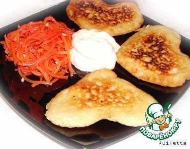 Подавать со сметаной. Я гарнировала морковью по-корейски.