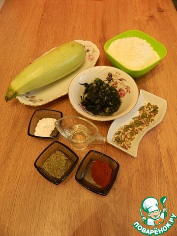 Ингредиенты для «Оладьи из кабачков с морской капустой»: