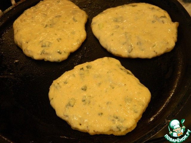 Рецепт «Оладьи из кабачков с морской капустой»: