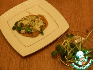 Для подачи используем пророщенные семяна подсолнечника или любую другую зелень. По составу и наличию ферментов пророщенные семена подсолнечника в 100 раз полезнее обычной кухонной зелени.