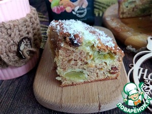 Нарезаем кекс. Вот такой кекс в разрезе, а какой вкусный! Киви добавило свою кисленькую вкусовую нотку. В меру сладкий, пряный и совсем новогодний!