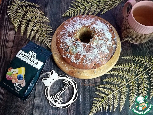 Чтобы у кекса был вид заснеженного, я посыплю верх, по незастывшей ещё глазури, кокосовой стружкой.