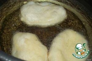 руки смазать в растительном масле,отрываем немного теста,делаем тонкую лепёшку,кладём начинку,залепить и жарим на среднем огне до золотистого цвета с обеих сторон.