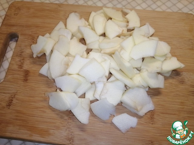 Яблоки очистить от кожуры, вырезать сердцевину и нарезать небольшими тонкими кусочками.