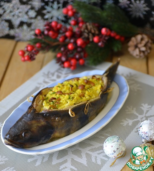 Рецепт «Окунь, фаршированный рисом с грибами»:
