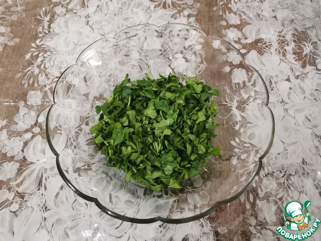 Вымыть, обсушить и порубить петрушку.