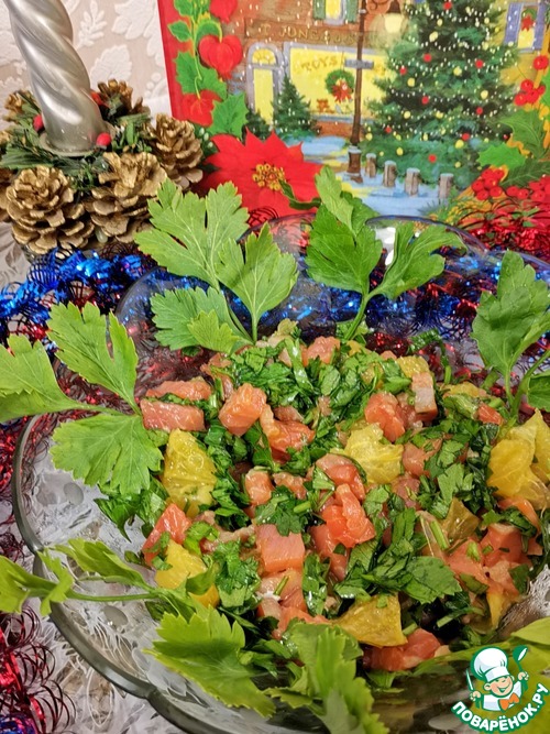 С удовольствием делюсь с Вами, поварята, невероятно быстрым в приготовлении рецептом салата. Думаю, что этот сочный, лёгкий, необычный и, в какой-то степени, новогодний вкус кого-то обязательно порадует. Угощайтесь!
