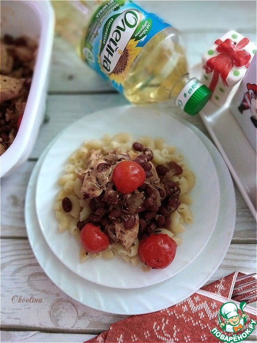 - Фасоль консервированная (у меня красная в с/с, можно взять белую) — 1 бан.