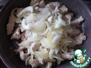 Греем масло и выкладываем кусочки филе. Слегка обжариваем.
