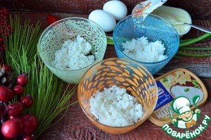 Приготовить продукты. Заранее отварить рис и сварить яйца вкрутую.
