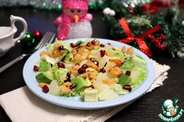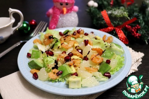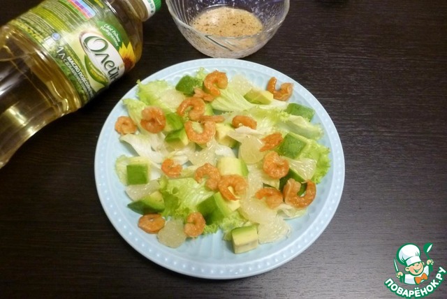 Рецепт «Салат с креветками, авокадо и грейпфрутом»: