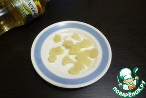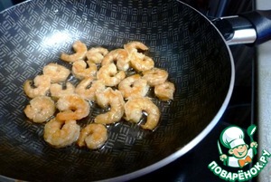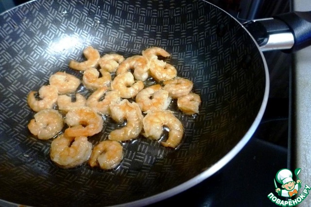 Очищенные креветки обжарить на растительном масле. Выложить на салфетку и охладить.