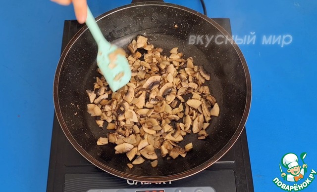 Грибы нарезать, потушить на сухой сковороде на среднем огне, чтобы выпарилась вода. Затем добавить масло, солим и перчим по вкусу и жарим до золотистого цвета.