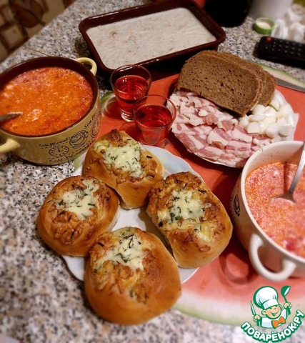 Готовые булочки оставляем остывать, прикрыв полотенцем и подаём к борщу. Приятного аппетита! -