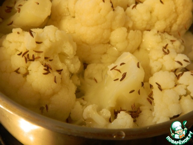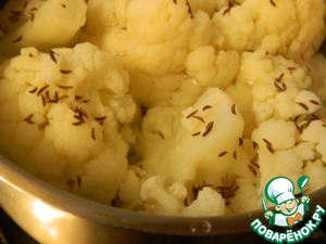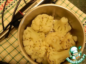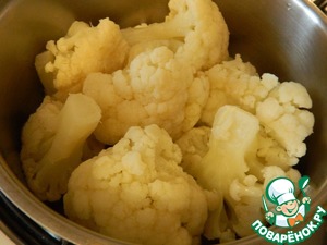 Цветную капусту разобрать на соцветья, сложить в кастрюлю.