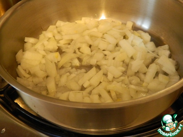 Нальем в сотейник масло и обжарим лук до прозрачности.