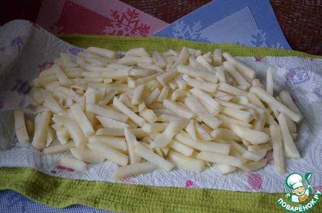 Затем воду слить, картофель залить кипящей водой, на 5-10 минут. Так картофель быстрее пропечётся в духовке.