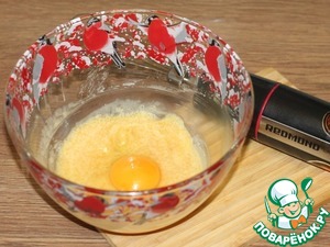 5. Вбиваем яйцо и взбиваем массу блендером с насадкой - венчик.