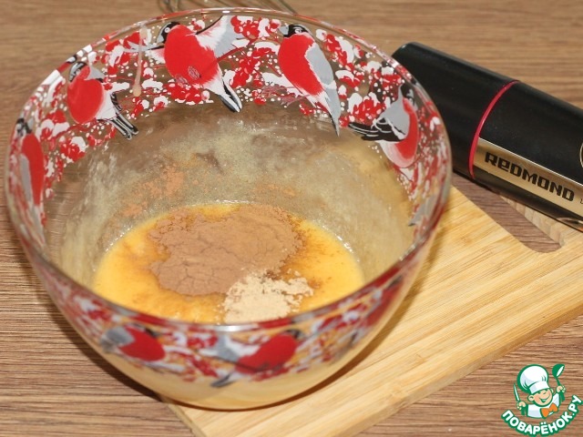 6. Добавляем какао и специи: имбирь, корицу, молотую гвоздику и соль взбиваем до однородности теста.