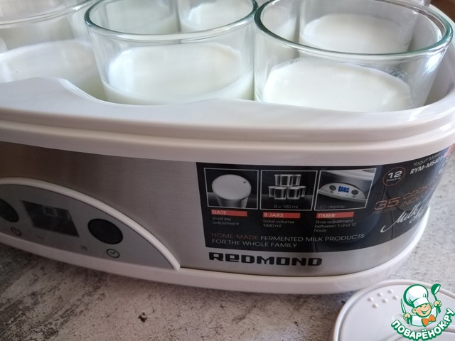 Йогурт я делаю сама в йогуртнице REDMOND. Получается густой некислый йогурт, который я использую по назначению и он у меня всегда в холодильнике есть.