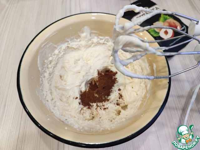 - Какао-порошок (Дополнительно потребуется какао-порошок для присыпки готового десерта) — 1 ч. л.