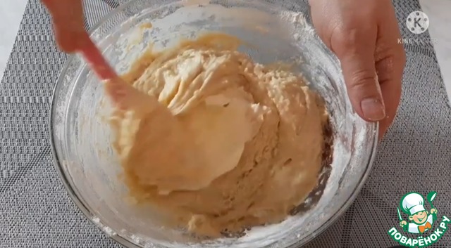 Постепенно добавляем просеянную муку с солью. Вымешиваем тесто.